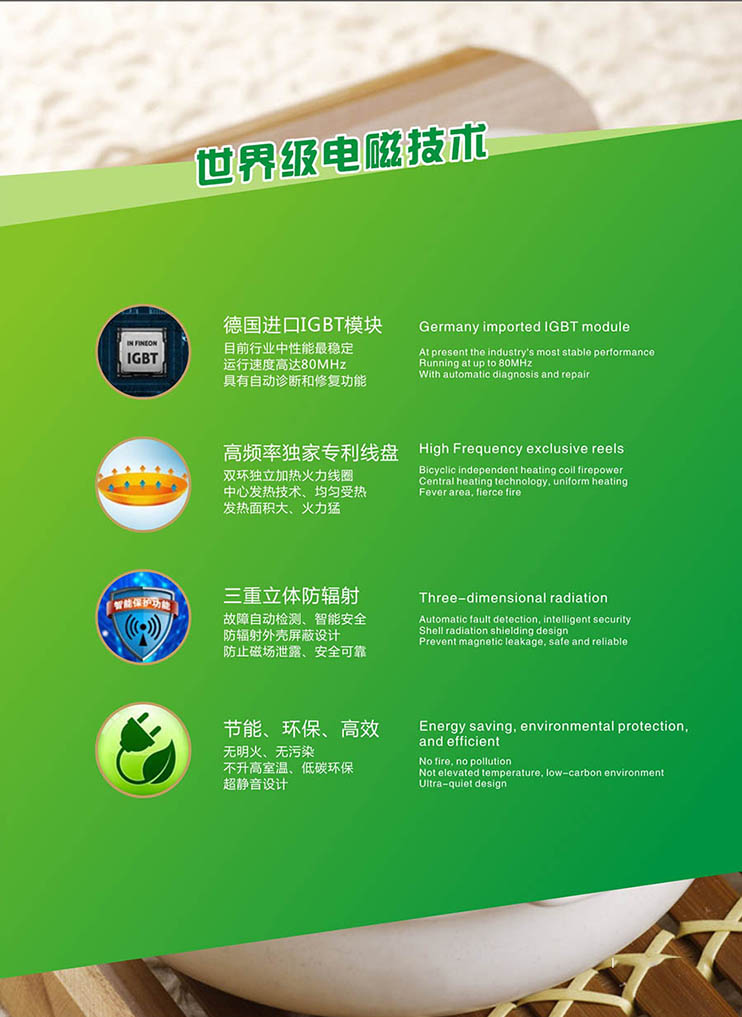 ![]() 電磁九頭煮面爐 采用技術"Infineon" IGBT; 采用行業“英飛凌”數字信號處理器; 線盤,火力均勻,全密封機箱、防油污、水及蟲侵蝕; 采用自行研發的腳動式磁感開關,三重立體防輻射屏蔽設計; IP44防護等級的多重安全保護,使用安心; 適用水壓:0.1-0.6MPa;進水管接頭:4分;電壓波動范圍:340V-430V之間; 可節約煙道、煙管投資費用,可減少煙道占用廚房空間 對部分需對廢氣凈化的廠家,節約了治理設備投資及運行時產生的水電費用 減少如液化氣使用存儲的漏氣易引致火災危險;電磁爐使用方便,減少不必要的空燒,可隨開隨關 定量分析對比 以下數據是將55公斤25°C冷水用大鍋灶加熱至沸騰(100°C)所測得 ![]() 測試數據對比分析 ![]() |